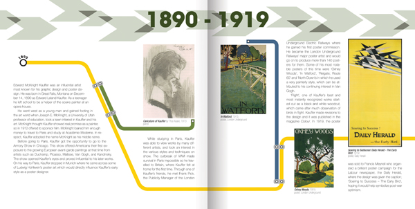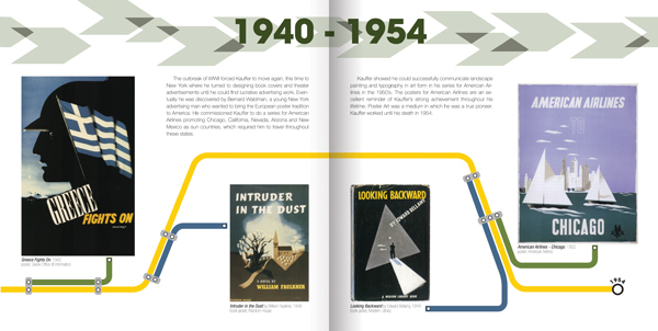 Sequential book about the works of an early graphic designer named Edward McKnight Kauffer. Kauffer produced a lot of posters for the London Underground and American Airlines, and the book has a traveling theme. The book can be viewed like a traditional flip book or as an accordion fold book. The goal for this book was to emulate his style and also incorporate my own.